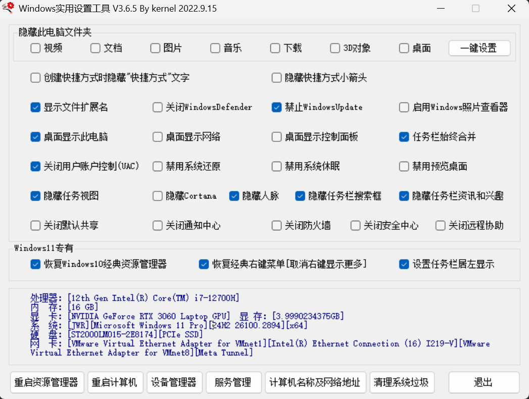 windows 轻松设置+实用工具+清理工具